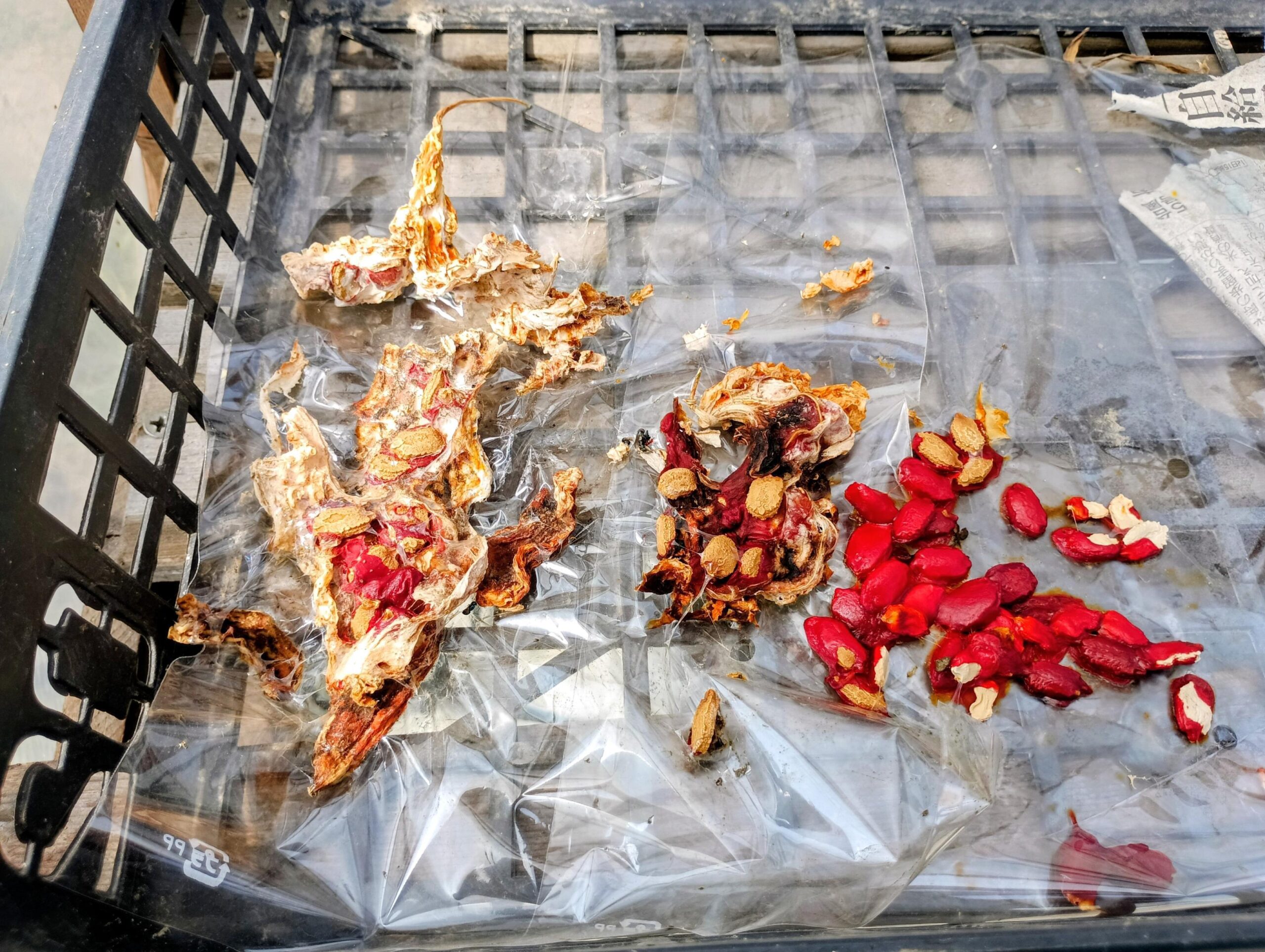 干している間にも、時々乾燥具合や種同士の固着を観察していきます。