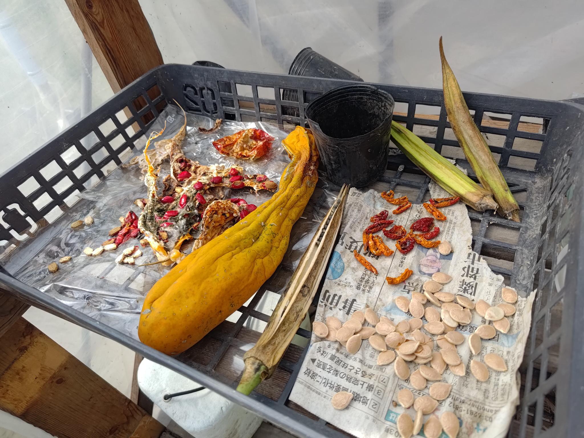 ピーマンもシシトウも初めての種採りでした。