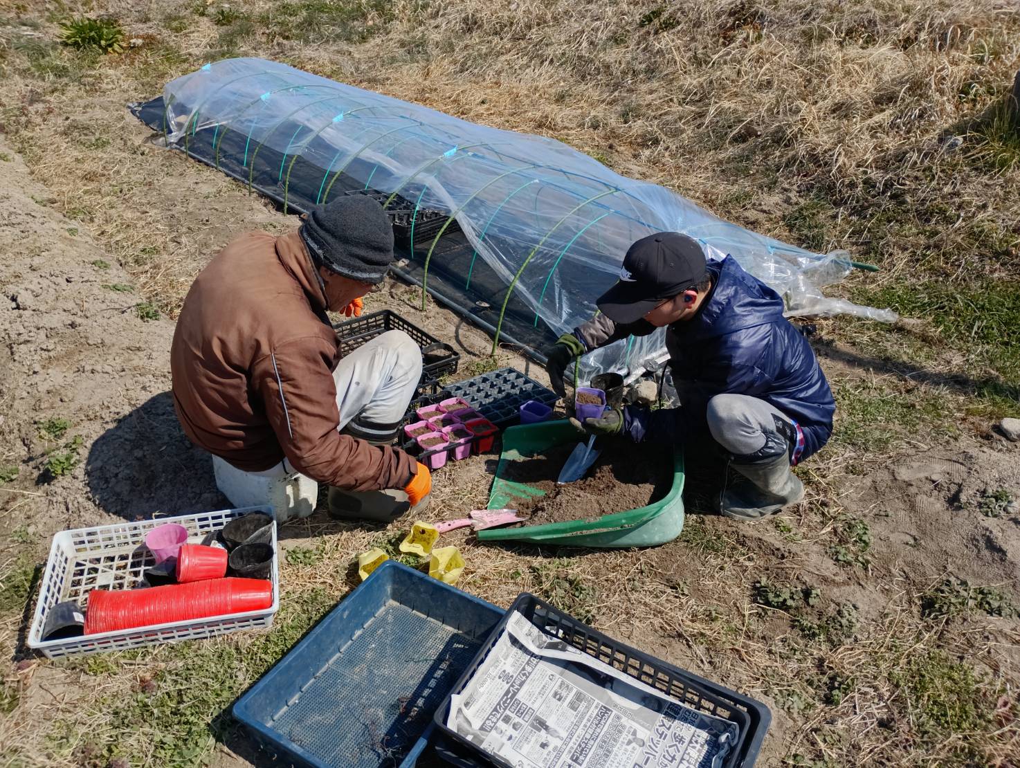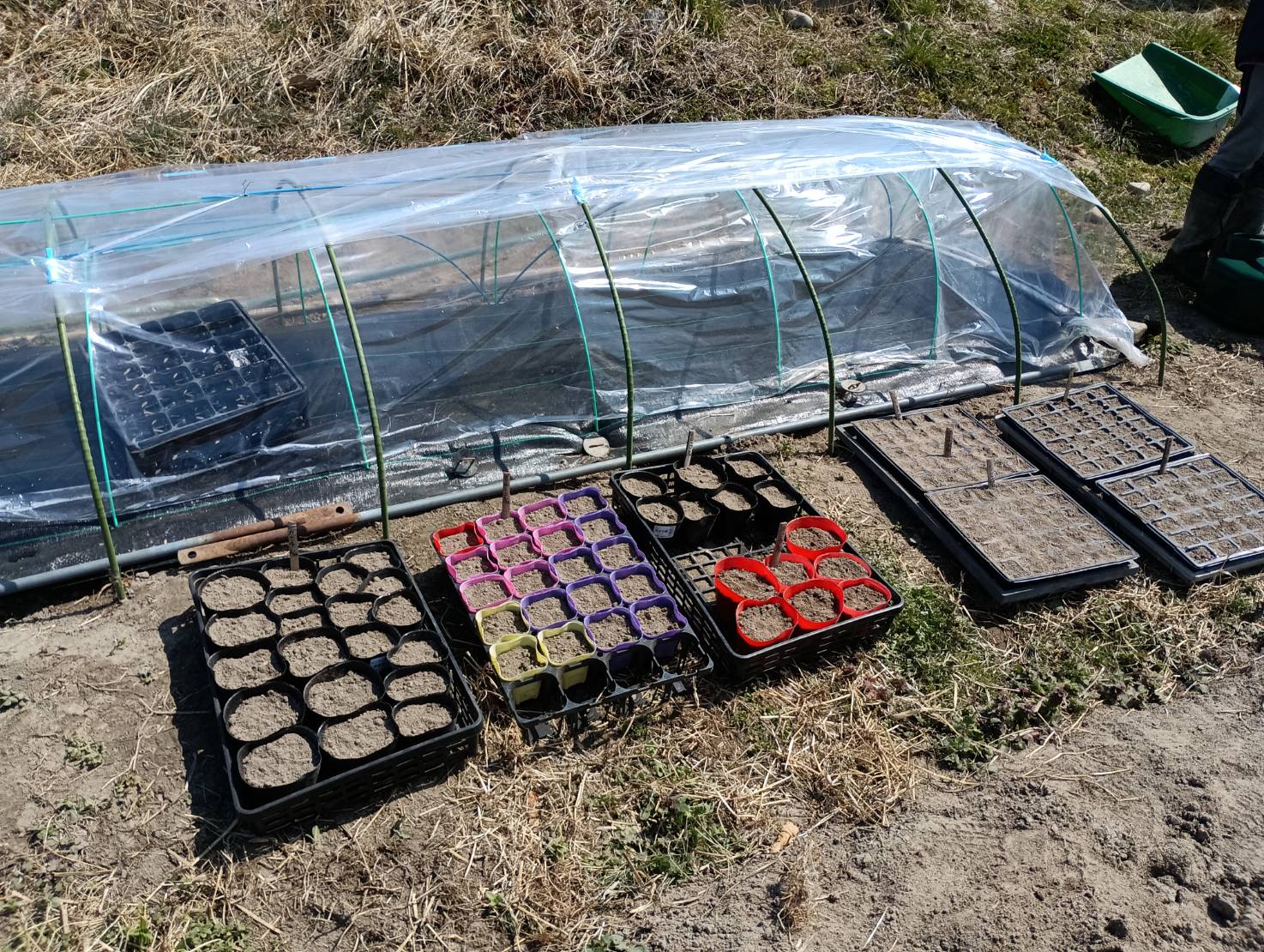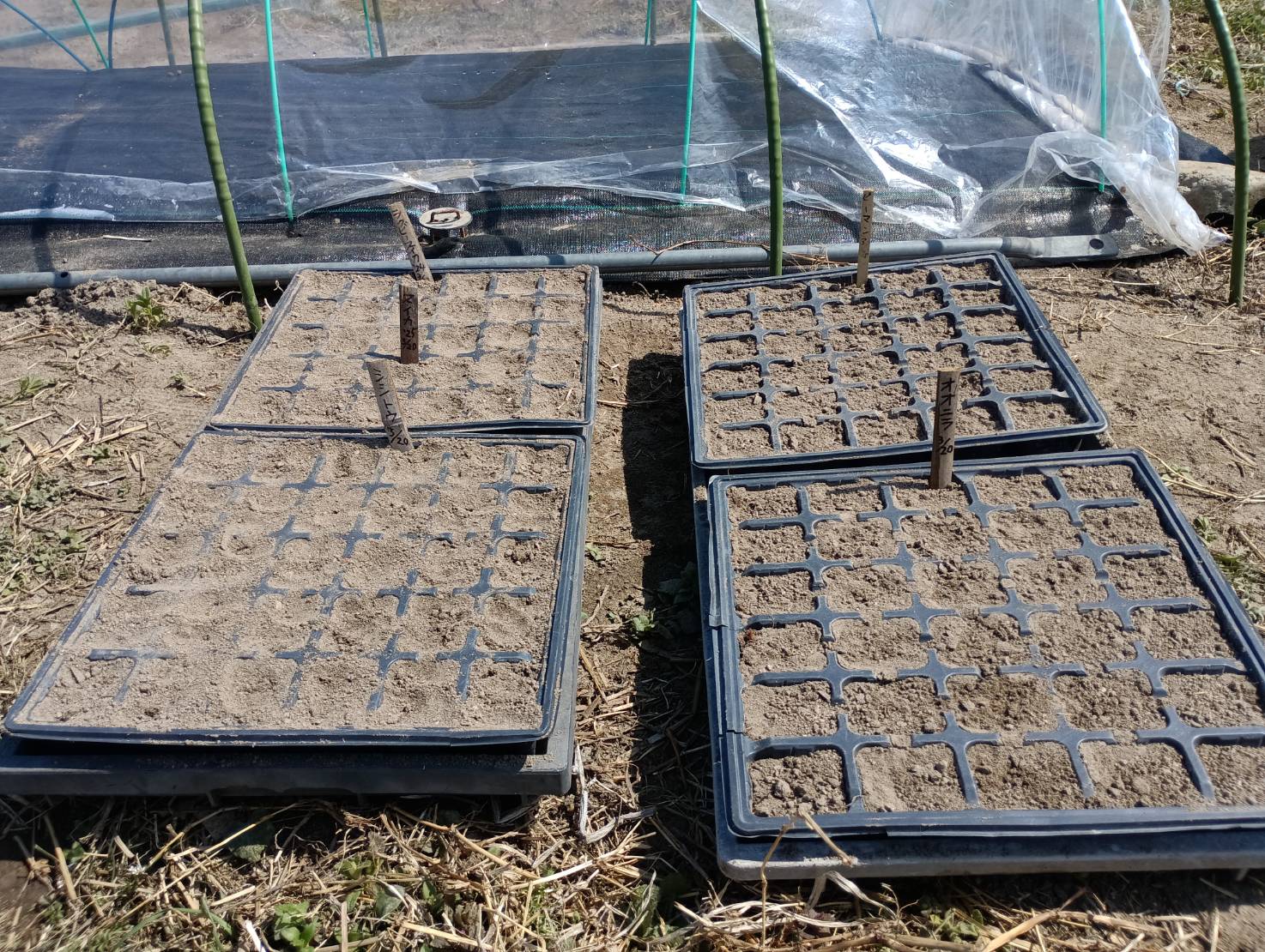 ビニール二重トンネルでの育苗は初めてなので、発芽と苗の成長状況を見て追加蒔きができるように種は残してあります。